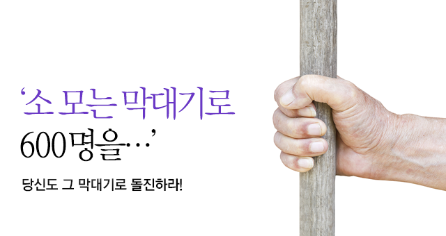 그녀는 기회를 찾고 있었다. 기회는 보통 불가능한 문제처럼 변장하고 우리를 찾아온다. 사람들은 대부분 자기 인생의 불가능한 문제들을 피해 도망치지만, 삼갈 같은 사람들은 자신의 소 모는 막대기를 들고 그런 문제들을 향해 달려든다.